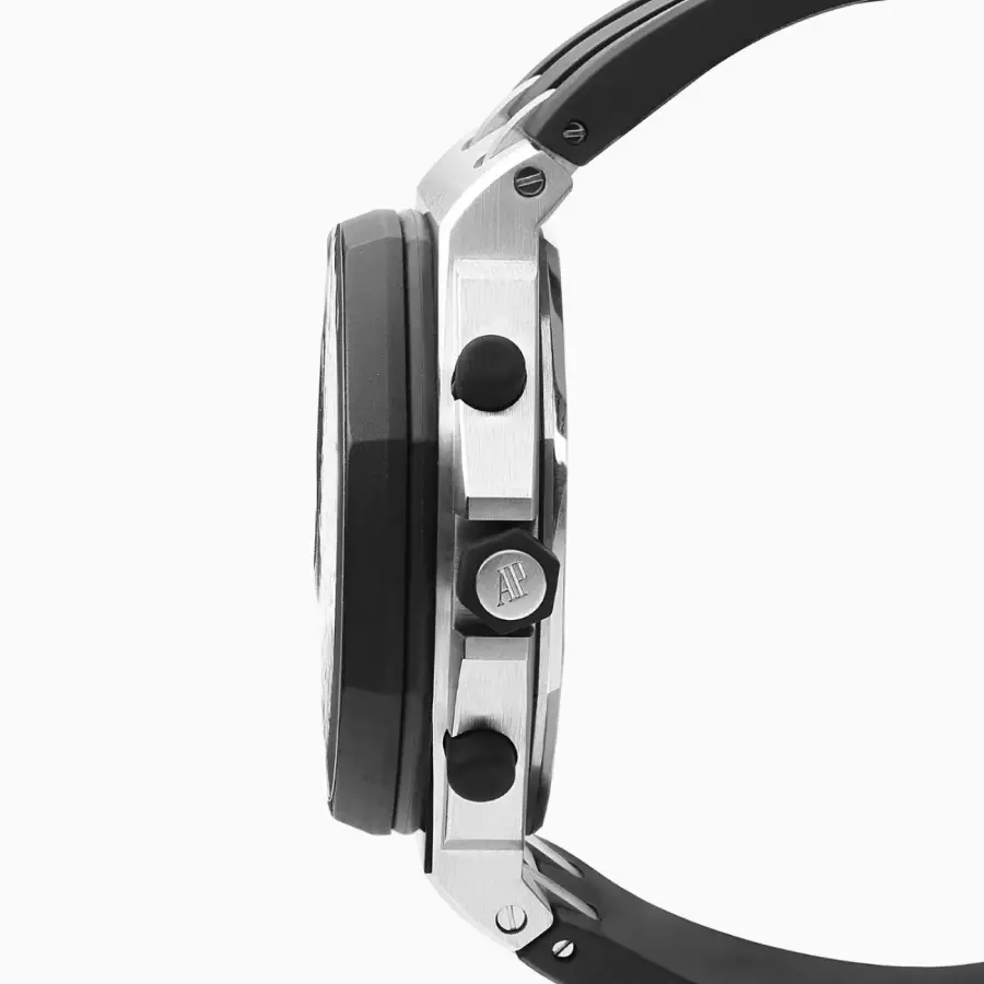 The Royal Oak Offshore White Replica from Audemars Piguet is a striking watch. It features a 904L stainless steel case with a